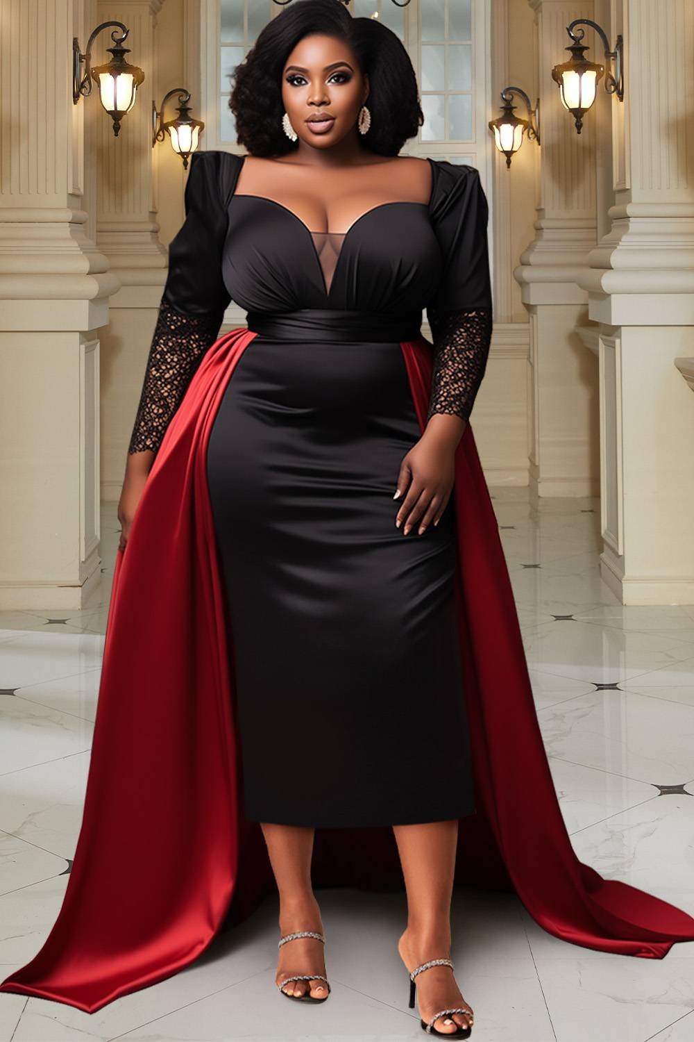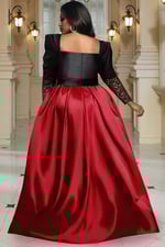 Formal Red Long Sleeved Peplum Satin Midi Dress from Fabulously Me Girls Formal Collection